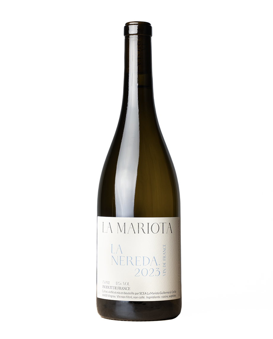 La Nereda est la nouveauté de cette année à La Mariota. En tout cas avec cet assemblage bien précis. Cecilia et Guillermo ont décidé d’assembler du Muscat Petit Grains non plus avec de la Roussanne mais avec du Macabeu. Les deux cépages sont à parts égales et sont fermentés séparément.